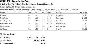 She was the 1/20 favorite in the Grade II $200,000 Santa Maria Stakes. To put that in perspective, Mopotism, the second favorite, was 22/1.