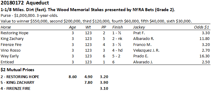 “We’ve been looking forward to the Wood for a while,” he added. “We’re excited to get him back to Aqueduct. It’s where he broke his maiden and stretching out to a mile and an eighth is going to allow him to show his true ability.”